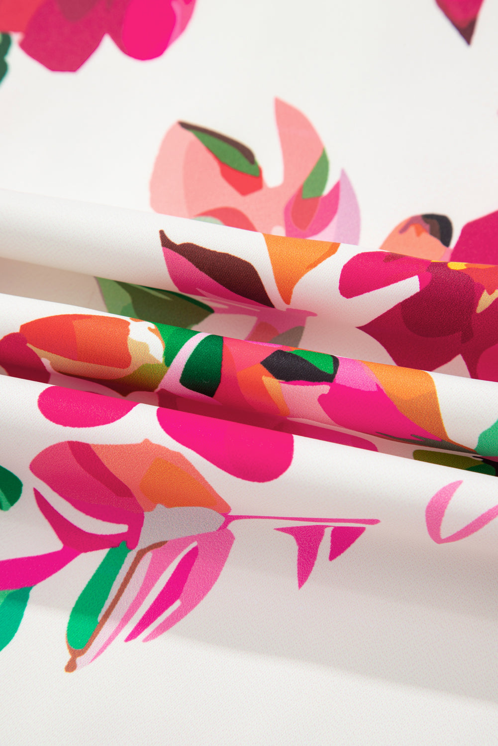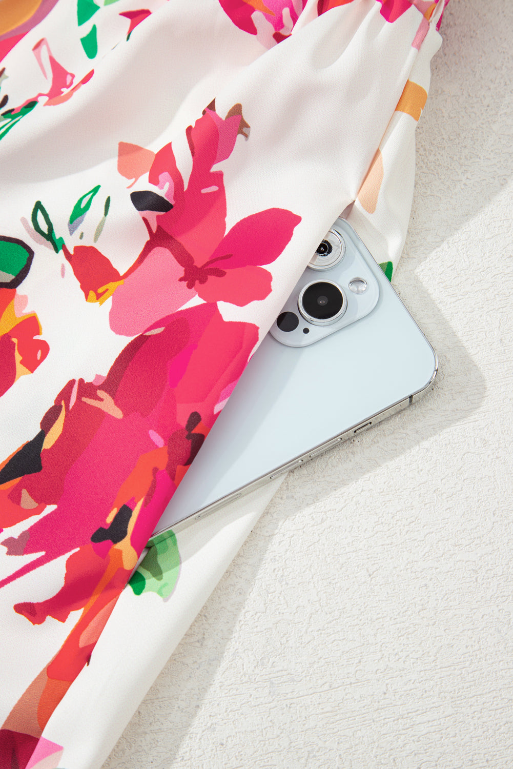 Pink Floral Print V Neck Ruffle Sleeve Plus Size Midi Dress