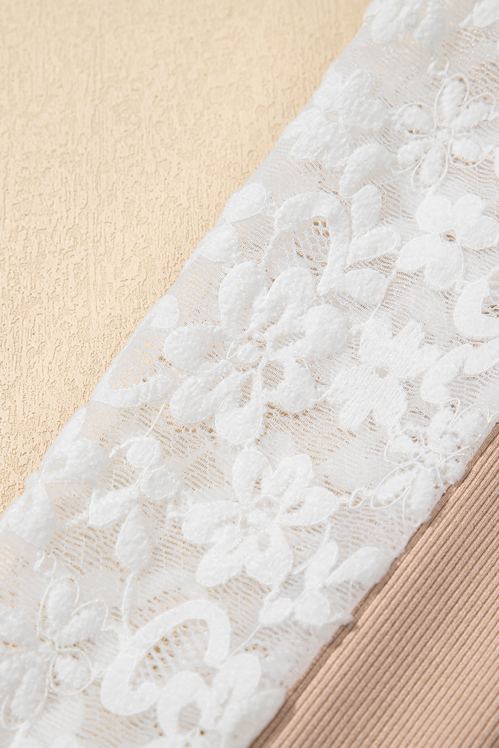 - This tightfitting top is fashionable and charming with floral lace patchwork.